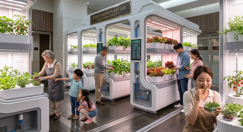 오티에르 반포만의 독보적인 상징, 바로 ‘식물 재배관(스마트 그린팜)’입니다.