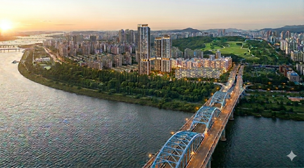 어둠이 내리고 조명이 켜진 이촌르엘을 멀리서 바라봅니다. 화려함보다는 기품이 느껴지는 그 실루엣을 보며 안도감을 느낍니다. 앞에는 강이 흐르고 뒤에는 숲이 감싸주는 이 평온한 요새 안에서, 우리 가족의 이야기는 더 깊고 아름답게 익어갈 것 같습니다.